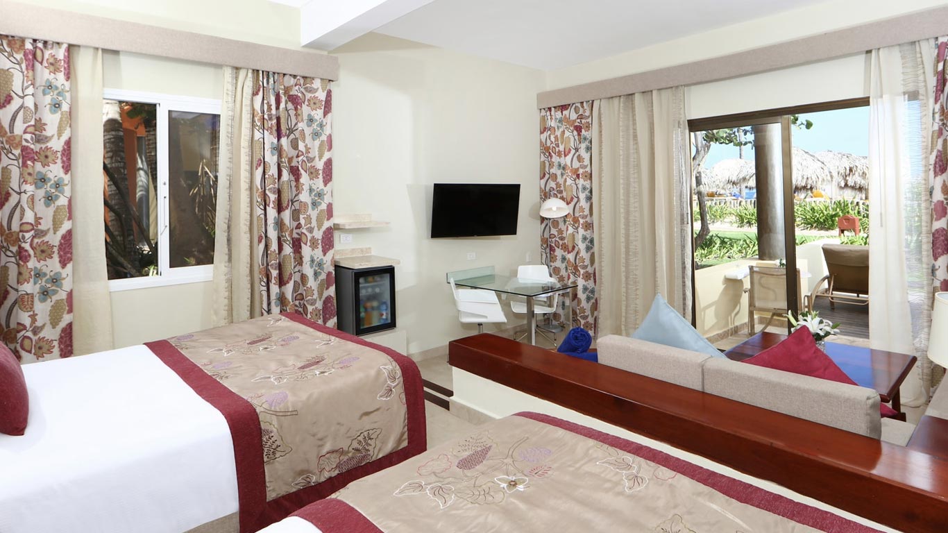 The Family Junior Suite at Iberostar Selection Bávaro features two connecting rooms, perfect for the youngest members of the family. It has a PlayStation, complimentary toys, and a minibar filled with an assortment of juices and candy. Outside, the Aqua Fun pool awaits, as well as Star Camp activities, and a whole world of fun. …And to make sure the adults have some time to relax, the suites include an afternoon’s childcare service free of charge for children between the ages of 4 and 12. Both rooms feature their own bathroom and private balcony overlooking the garden. They’re also conveniently located right by the beach and Star Camp facilities.